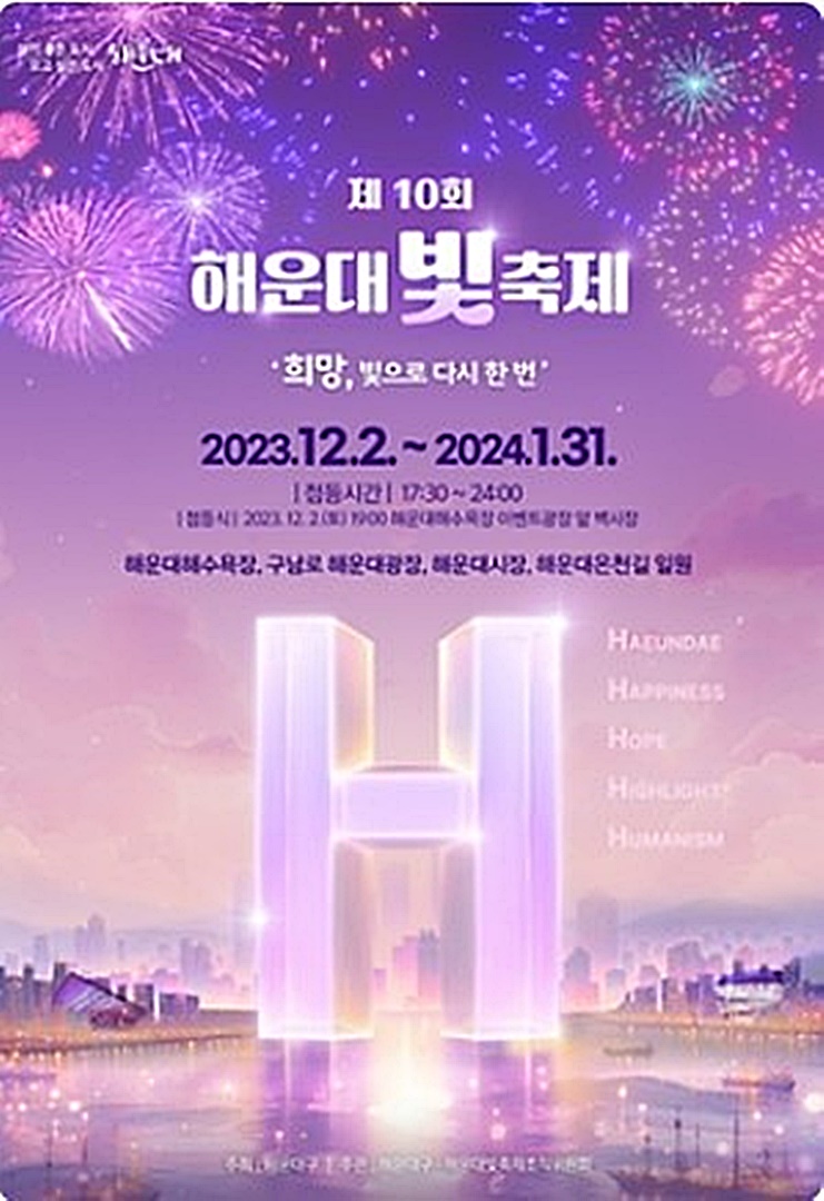 아름다운 빛 조형물 포토존들과 다양한 프로그램을 즐기면서 해운대에서 잊지 못할 추억을 만드시기 바랍니다.